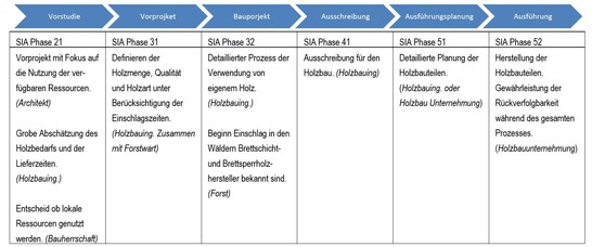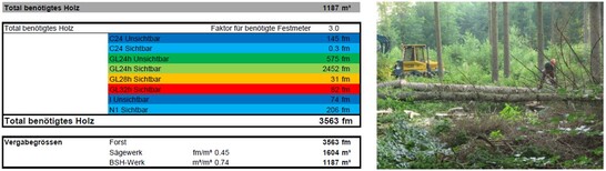 Die Planung der Holzbeschaffung von der Waldwirtschaft über die verarbeitenden Betriebe bis zum Holzbauer muss von Anfang an gut koordiniert werden. Timbatec hat dazu bereits Anfang 2019 die Holzmengen für das Tragwerk, die Gebäudehülle und die Aussenbekleidung ermittelt und die benötigte Festigkeit definiert. Ebenfalls wurde festgelegt, ob das Holz schlussendlich sichtbar ist oder nicht. Mit diesen Angaben können die Förster das richtige Holz aus den Wäldern ernten.