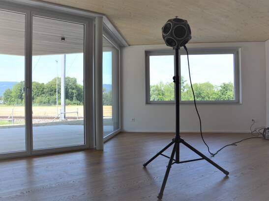 Der Bodenaufbau ist mit einer Dicke von unter 40 Zentimeter sehr schlank gewählt. Sechs Zentimeter elastisch gebundene Splittschüttung und vier Zentimeter Trittschalldämmung stellen den Schallschutz zwischen den Wohnungen sicher. Schallmessungen zeigen, dass im Bereich der Trittschallmessungen die Mindestanforderung deutlich übertroffen werden, beim Luftschall werden sogar die erhöhten Anforderungen erfüllt.