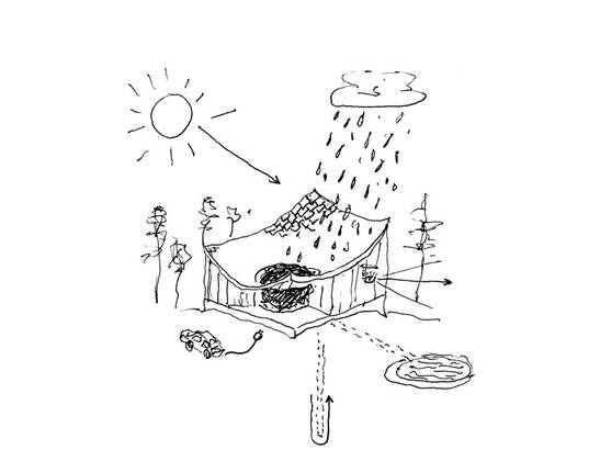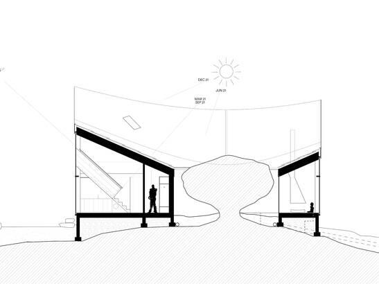 Nach vertieftem Studium der Umgebung folgten erste Skizzen, bei denen das Haus den Felsbrocken integrierten. Hinter dieser eleganten Lösung verbergen sich komplexe Geometrien mit vielen konstruktiven Herausforderungen.
