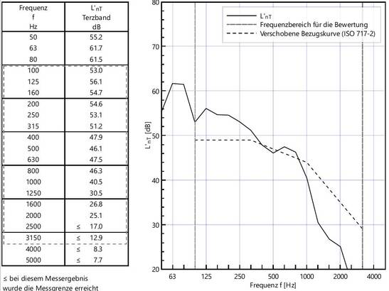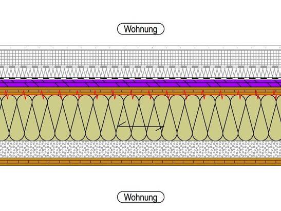 Akustikmessungen beweisen, dass in diesem Gebäude die erhöhten Anforderung eingehalten werden. Das zeugt einerseits von einem guten Aufbau der Decke, andererseits von einer sauberen Ausführung der Bauarbeiten. Wenn Gebäude ringhörig sind, ist das oft auf eine mangelhafte Ausführung zurückzuführen. Denn der Schall sucht sich seine Wege über undichte Fugen, zu tief eingeschlagene Verbindungsmittel oder falsch eingebaute Stellstreifen von Unterlagsböden.