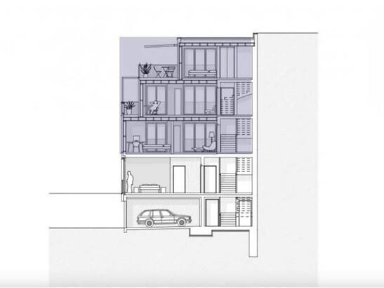 Ausgehend von einer Potenzial- und Machbarkeitsstudie formulierte die Bauherrschaft den Wunsch, die Nutzungsreserven ihrer Parzelle weitestgehend auszuschöpfen. Das bestehende zweigeschossige Garagen- und Werkstattgebäude zu erhalten und aufzustocken, war dabei die vielversprechendste Lösung.