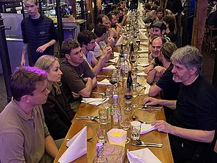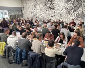 Den Tag liessen wir im Restaurant Riithalle [www.riithalle.ch] in Zürich ausklingen, gemeinsam mit den Partner:innen, vielen guten Gesprächen und in engagierter Gastro-Kultur: Feines Essen, entspannte Stimmung – genau das Richtige nach einem vollen Programm.