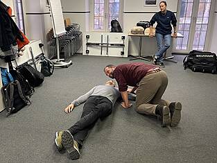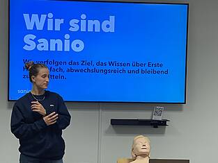 Ein Dankeschön geht an die kompetenten Teams und Kursleitungen der Sanio AG für die Durchführung der Gruppenkurse. Praktische Übungen zur Anwendung von theoretischem Wissen, die Herzdruckmassage an der Reanimationspuppe und das Bedienen eines Defibrillators vermittelte den Kursteilnehmenden Sicherheit für Notfallsituationen.