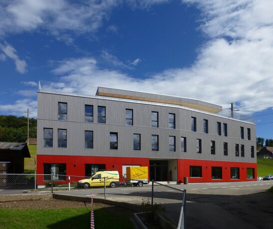 Otto Lädrach AG in Worb, kurz OLWO, ist eines der bedeutendsten Produktions- und Handelsunternehmen der Holzbranche. Der alte Bau entsprach nicht mehr den Anforderungen und Platzbedürfnissen. So ist mitten in Worb ein dominanter viergeschossiger Holzbau entstanden, der im Frühjahr 2015 nach rund einjähriger Bauzeit bezogen wurde. In den grosszügigen Ausstellungsräumen im Erdgeschoss hat OLWO viel Platz, um die umfangreiche Produktpalette zu präsentieren. Die beiden Obergeschosse beherbergen die modernen Büros, das Attikageschoss die hauseigene Cafeteria mit Dachterrasse.
