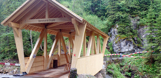 Staatsrätin, Frau Marie Garnier, sowie andere Redner unterstrichen bei der Einweihung die Bedeutung des faszinierenden Bauwerks: Es sei ein Symbol für die Aufforstung vor 125 Jahren und ein zentrales Element für die heutige Bewirtschaftung des Schutzwaldes. Die Brücke verbindet die Bezirke Sense und Greyerz und erhielt ein Zertifikat für die Verwendung von Schweizer Holz.