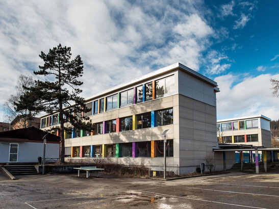 Das Schulgebäude aus den 1950er Jahren wurde um ein Stockwerk erhöht. Dank Holz: Die Schülerinnen und Schüler haben jetzt deutlich mehr Platz