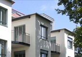 Bei den Erweiterungen und Aufstockungen wurde grosser Wert auf bezahlbare, aber dennoch ökologische Bauweise gelegt. Um mehr Wohnraum zu schaffen, wurde der Bestand um eine Etage aufgestockt. So konnten insgesamt vier neue Wohneinheiten geschaffen werden. Das neue Dach ist als Satteldach mit Schlepplukarnen ausgebildet. Die Dacheinschnitte ermöglichen neue Dachterrassen. Dank den wesentlich optimierten Schallschutz-Massnahmen und den grossen Balkonen, sind die Wohnungen heute deutlich behaglicher und komfortabler.
