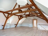 Im bestehenden umgebauten Bauernhaus befindet sich neu der Mehrzweckraum sowie die Bibliothek.