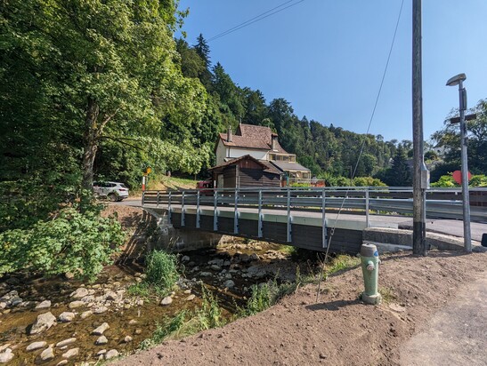Die alte Brücke von Le Tirage stammte aus dem Jahr 1913 und befand sich in einem fortgeschrittenen Stadium des Verfalls. Sie wurde durch eine innovative, vollständig aus Holz bestehende Konstruktion ersetzt. Die Brücke ist ein Modell für nachhaltiges Bauen und Kreislaufwirtschaft, indem sie die Verwendung lokaler Ressourcen, die in der Nähe verarbeitet werden, bevorzugt. Eine Mischung aus Fichten- und Lärchenholz aus den umliegenden Wäldern wurde für die Tragwerke sowie für die Verkleidungselemente verwendet, wodurch die Tragwerke vor Witterungseinflüssen geschützt werden.