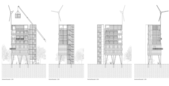 Der Projektvorschlag SETZKASTEN von Inhelder Osterwalder Architekten GmbH besteht aus zwei Volumina: einem siebengeschossigen, hölzernen Hauptbau und einem offenen, filigranen und begrünten Treppenhausturm. Die ersten beiden Obergeschosse dienen für Veranstaltungen, Seminare und Weiterbildung und sind beheizt. Die drei weiteren Geschosse bieten unbeheizten Raum für die flexiblen Forschungs- und Wohnmodule. Das oberste Geschoss ist primär eine öffentliche Aussichtsplattform, eine Ausbaureserve sowie ein Ort der Technik.