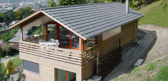 Ein einfaches, rechteckiges Einfamilienhaus in Minergie-Standard am Hang.