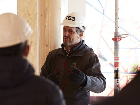 Während der Ausführungsphase übernehmen wir die Bauleitung vor Ort. Unsere Bauleiter sind erfahrene Zimmerleute und Holzbautechniker mit unterschiedlichen Weiterbildungen. Sie vereinen Praxis und Theorie ideal und haben den Gesamtüberblick über ein Holzbauprojekt. So sind wir das ideale Bindeglied zwischen Bauherrschaft, Architektur und Handwerkern auf der Baustelle.