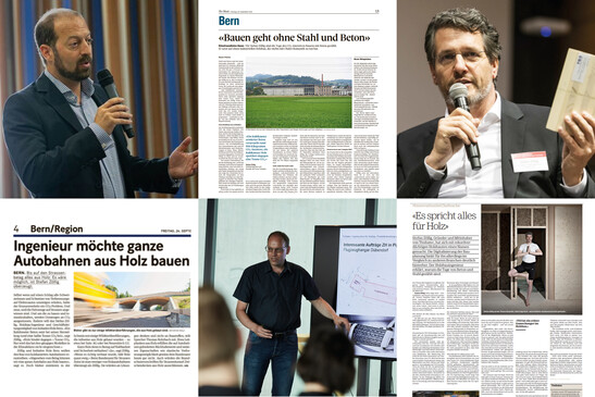 Il y a quelques années encore, la construction en bois faisait l'objet d'articles dans les des revues spécialisées. Aujourd'hui, les quotidiens et les journaux les plus lus font état de hebdomadaires parlent de l'utilisation du bois. Nous nous réjouissons de cette évolution et sommes fiers de faire partie de cette histoire à succès. Au début de l'année, Stefan Zöllig a rejoint le grand "Who's Who" du secteur du bois et du bâtiment. secteur suisse de la construction et de l'immobilier dans la NZZ am Sonntag. 20Minuten, le Bund et d'autres journaux ont régulièrement rendu compte des projets innovants comme la Keller en bois et les ponts pour animaux sauvages. Vous trouverez un aperçu ici.