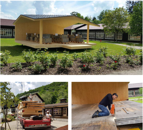 Dans l'esprit de l'économie circulaire, l'un des deux éléments de caisson creux pour ponts lourds a été réalisé à partir du contreplaqué de planches du banc d'essai de longue durée. Les panneaux de contreplaqué assemblés avec la technologie TS3 sont parfaitement adaptés à l'économie circulaire. Ils peuvent être facilement découpés à la taille souhaitée pour l'objet à déconstruire et réutilisés pour le nouveau projet.