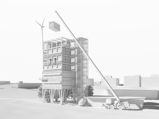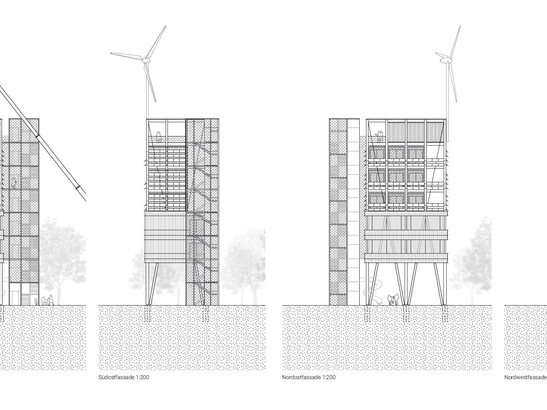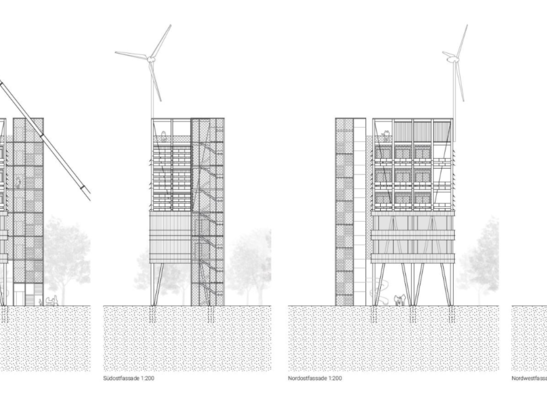 Dans le cadre du concours d'idées, des possibilités de mise en œuvre de la «CircularTower» ont été générées. En récompensant le projet gagnant, le jury du concours s'est concentré sur une construction durable, l'utilisation de matériaux renouvelables et neutres pour le climat, l'utilisation d'éléments de construction recyclés et la possibilité de réutiliser les nouveaux éléments.