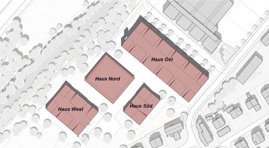 Le complexe scolaire se compose de quatre bâtiments. C'est surtout le bâtiment Est qui est passionnant, avec la salle de gymnastique au sous-sol et les salles de classe au-dessus. salles de classe situées au-dessus.