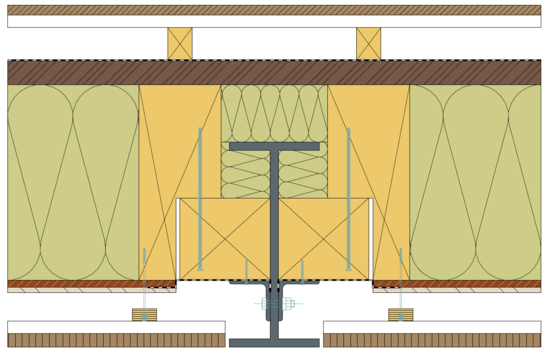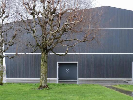 Les remplissages entre les cadres en acier ont été supprimés et remplacés par des éléments en bois préfabriqués. Ils rigidifient le hall, qui répond ainsi aux exigences statiques actuelles. Du côté intérieur, les poutres en acier restent visibles, ce qui marque l'espace du hall par la trame des cadres en acier filigrane. Tous les éléments ont ainsi été planifiés autour de la charpente métallique existante. La façade extérieure est marquée par le bardage en bois monté verticalement.