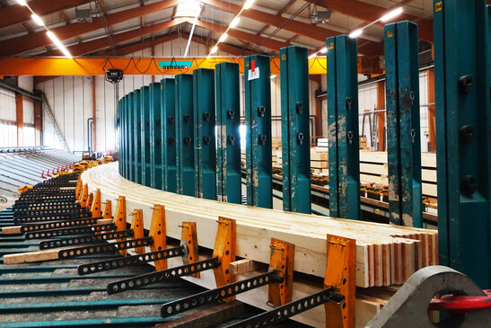 Fabrication du bois lamellé-collé dans l'entreprise Hüsser Leimbau AG.