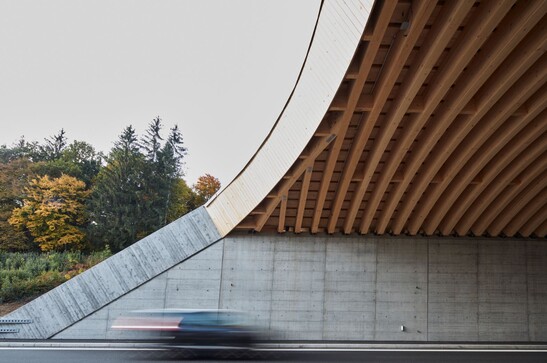 Le pont à faune Rynetel est le premier passage à faune en bois de Suisse. Plus de 1000 tonnes de CO₂ ont pu être économisées par rapport à une construction conventionnelle. Pour en savoir plus sur ce pont pour animaux sauvages et sur d'autres ponts en bois passionnants, cliquez ici. dans notre récent magazine.