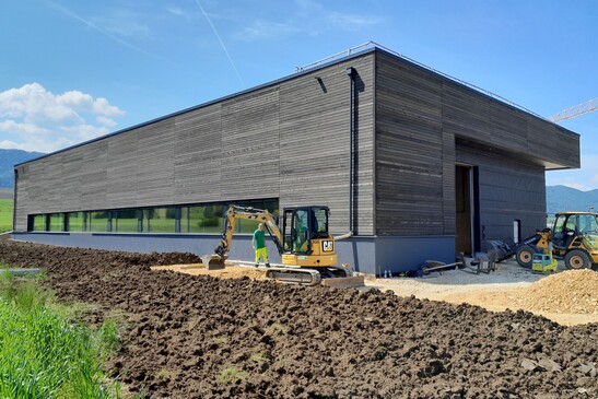 Avec son nouveau bâtiment, TSUGAMI NP Swiss mise sur une halle esthétique en bois. Cette construction d'avenir et durable s'intégre dans le paysage de la Vallée de Delémont.