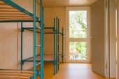 Le centre d'hébergement d'urgence de Thalwil est un bâtiment modulaire à deux étages de construction en bois. Long de 28 mètres et large de 7,5 mètres, il peut accueillir environ 40 personnes. L'accès se fait par une pergola extérieure en acier. Le projet a été planifié et réalisé en un temps record. La planification s'est déroulée de mi-2023 à mi-2024 et le bâtiment a été achevé en mai 2025 après huit mois de travaux, prêt à être occupé.