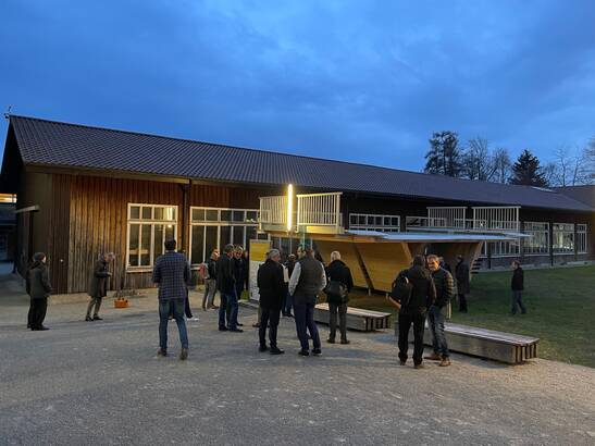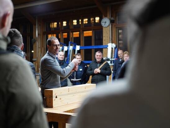 Das Programm stand im Zeichen der 2021 angestossenen Motion «Erforschung und Innovation des Werkstoffs Holz für den Einsatz im Infrastrukturbau als Dekarbonisierungs-Beitrag». Die Mitarbeitenden des AGG und Tiefbauamts erhielten im Rahmen des Besuchs Einblick in die Holz-Forschungskompetenzen der Berner Fachhochschule und in das grosse Potenzial der Motion für die Klimaneutralität der Schweiz.