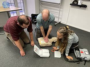 Ein Dankeschön geht an die kompetenten Teams und Kursleitungen der Sanio AG für die Durchführung der Gruppenkurse. Praktische Übungen zur Anwendung von theoretischem Wissen, die Herzdruckmassage an der Reanimationspuppe und das Bedienen eines Defibrillators vermittelte den Kursteilnehmenden Sicherheit für Notfallsituationen.