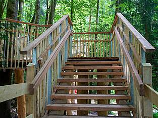 Die vorgefertigten Halbplatten wurden passgenau um den Baumbestand gelegt, mit EPDM-Kautschukfolie wettergeschützt verkleidet und mittels einem Alu-Profil fixiert. Entstanden ist ein bis ins Detail präzise ausgeführtes Holzbauprojekt, welches optisch überzeugt und den hohen Anforderungen an die Dauerhaftigkeit gerecht wird.
