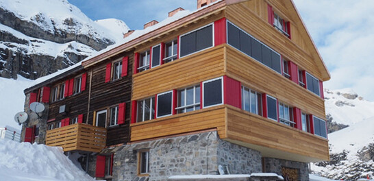Die Lämmerenhütte oberhalb von Leukerbad ist eine der am besten frequentierten Unterkünfte des Schweizerischen Alpenclubs SAC. In den vergangenen 25 Jahren hat sich die Zahl der Übernachtungen auf rund 7800 praktisch verdoppelt, der Betrieb der Hütte gelangte an seine Grenzen. Deshalb entschied sich die zuständige SAC-Sektion, die Hütte um fünf Meter zu verlängern. Unter anderem konnten so die Betten verbreitert, mehr kleine Zimmer eingebaut und der Komfort in der Hütte generell verbessert werden. Die Anforderungen des Bauvorhabens waren anspruchsvoll, denn die Hütte muss enorme Schneelasten tragen und heftigen Winden standhalten. Zudem musste das gesamte Baumaterial per Helikopter zur Hütte geflogen werden.