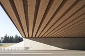 Die Wildtierüberführung im Kanton Luzern hat eine Breite von 50 Metern und eine Länge von rund 36 Metern. Die lichte Höhe beträgt 4.80 Meter. Die fast mannshohen Brettschichtholzträger wurden bei der n'H in Lungern vorgefertigt, vormontiert und just in time auf die Baustelle geliefert.