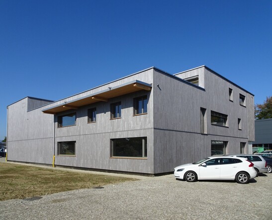 Der Neubau am Industrieweg in Aefligen wird als Gewerbegebäude mit Lagerraum, Produktion und Büroräumen genutzt. Im 2. Obergeschoss entstanden zudem zwei Wohnungen. Es umfasst mit einer Höhe von gut 9 Meter ein-, zwei- und dreigeschossige Gebäudeteile ohne Untergeschoss. Das Gebäude steht im Schwemmgebiet der Emme. Timbatec hat daher einen Bericht zu den Objektschutzmassnahmen ausgearbeitet und die Aussenwände auf den Wasserdruck einer 1.7m-Wassersäule bemessen.