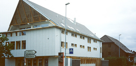 Beim bäuerlichen Eltern-Betrieb entstand ein Ersatzneubau in Holz, der nebst Wohnungen für die jüngere Generation zusätzliche Wohnungen zwecks Verkauf/Vermietung bieten sollte. Zudem werden 2 Wohnungen als Alters- und Pflegewohngruppe genutzt.