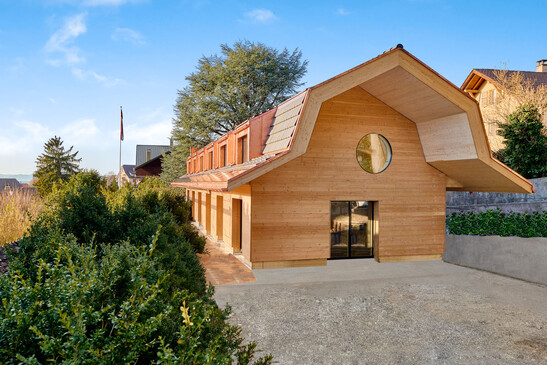 In Thun entstand ein Mehrfamilienhaus voller Innovationen. Im gesamten Haus mit 5 Wohneinheiten wurde kein Beton und kein Stahl verbaut - auch im Keller nicht. Auf einer 160 mm dicken Dämmplatte liegen Brettsperrholzplatten auf. Eine wasserdichte Folie ummantelt das Holz für den Feuchteschutz. Die Innenwände sind nicht tragend ausgebildet, Stützen und die Aussenwände tragen die Deckenplatte aus Brettsperrholz. So ist der Keller sehr nutzungsflexibel und kann dank des angenehmen Raumklimas vielseitig genutzt werden. Das Haus in Thun ist zudem das Living Lab des Forschungsprojekts DeepWood zusammen mit der Hochschule Luzern und der Berner Fachhochschule. Mit DeepWood werden die Planungsmethoden Building Information Modeling (BIM) weiterentwickelt.