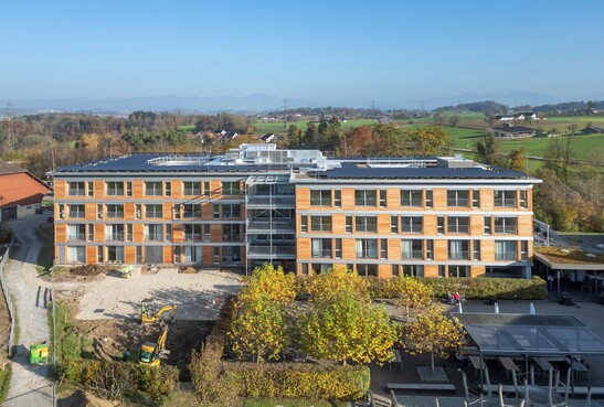 Das Pflegezentrum Loogarten in Esslingen wurde mit der innovativen TS3-Technologie in kurzer Zeit, im laufenden Betrieb um zwei Geschosse mit eigenem, regionalen Holz aufgestockt und damit deren Bewohnerkapazität verdoppelt.