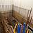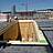 Die 42 Millimeter dicken 3-Schichtplatten wurden für den Brandschutz auf der Rauminnenseite mit 3x15 Millimeter Gipsfaserplatten verkleidet. Auf der anderen Seite dient die Platte als verlorene Schalung für den Beton. Bis der Beton ausgehärtet ist, wird das Treppenhaus provisorisch verstärkt.