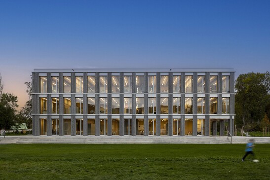 Die tragenden Elemente wurden nach dem Pfosten-Riegel-Prinzip vollständig aus Holz gefertigt, einschliesslich der vertikalen Verkehrskerne, die aus gekapselten CLT-Platten bestehen. Eine Holz-Holz-Rippendecke, ergänzt durch eine Beschwerungslage, die die teilweise Integration der Gebäudetechnik ermöglicht, sorgt für eine schnelle Ausführung und erfüllt die Anforderungen an den Schallschutz perfekt.