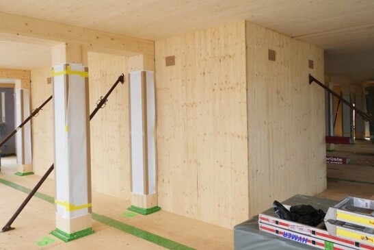 Impressions de la phase de construction : les éléments en bois peuvent être facilement préfabriqués et montés. peuvent être utilisés.