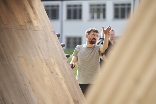 Dans l'esprit de l'économie circulaire, l'un des deux éléments de caisson creux pour ponts lourds a été réalisé à partir du contreplaqué de planches du banc d'essai de longue durée. Les panneaux de contreplaqué assemblés avec la technologie TS3 sont parfaitement adaptés à l'économie circulaire. Ils peuvent être facilement découpés à la taille souhaitée pour l'objet à déconstruire et réutilisés pour le nouveau projet.