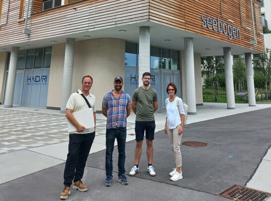 Le deuxième point de départ a été atteint en quelques minutes de marche : le Forum am Seebogen a été présenté de manière très charismatique par DI Josef Saller de studio heri&salli architectes tout comme la construction en bois elle-même avec toutes les réflexions et les histoires qui s'y rapportent. Étant donné que l'avenir de la construction est actuellement révolutionné dans le cadre de projets communs avec le studio heri&salli, le partenaire commercial a pu être soutenu pendant la visite pour des questions spécifiques sur le thème de la construction en bois et de la protection contre les incendies. Merci au studio heri&salli !