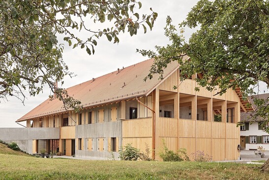 Le projet de maison individuelle «Dingenhart» a permis de redonner vie à une ancienne grange dans un hameau pittoresque près de Frauenfeld et de créer un point de mire en bois et en béton apparent.