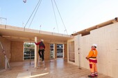 Les températures froides lors du coulage des panneaux CLT ont nécessité des mesures de construction hivernales. Le bâtiment a donc été temporairement emballé et chauffé. Les températures nécessaires au coulage et au durcissement ont ainsi pu être assurées.