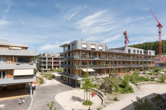 En tant que construction pionnière de la société à 2000 watts, le plus grand lotissement en bois en construction Minergie P du canton de Berne a été réalisé avec environ 110 logements. Le concept énergétique prévoit de collecter l'énergie en été et de la stocker dans le sol pour l'utiliser en hiver. Il s'agit d'une nouveauté absolue. De même, les riverains renoncent volontairement à leur voiture, et 400 places de stationnement pour vélos sont disponibles à la place.