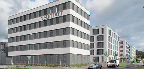 Les bâtiments administratifs ont été construits avec une ossature en béton armé. Pour les façades, des éléments en ossature bois ont été placés devant la structure porteuse en béton. La mission confiée à Timbatec consistait à développer des détails appropriés et à démontrer la statique pour les raccords aux passages d'étages.