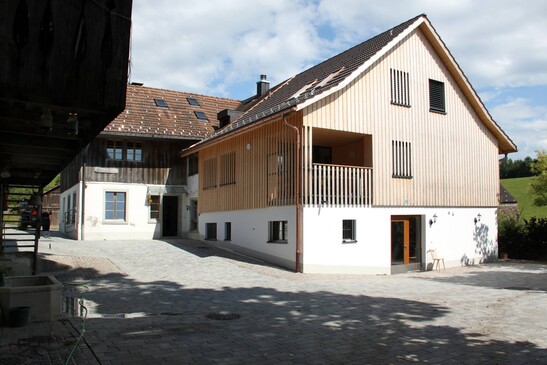 Au-dessus du lac de Pfäffikon, dans la commune de Bäretswil, des personnes ayant besoin d'assistance vivent et travaillent dans la ferme Waberg avec une famille d'agriculteurs. Timbatec a contribué à la planification dans le cadre de la rénovation du site, notamment en matière d'ingénierie bois, de protection incendie et de physique du bâtiment. Le projet comprend deux volets. D’une part, le parc immobilier agricole a été complété par une étable moderne pour la production laitière et une nouvelle remise. D’autre part, la grange existante a été transformée : le rez-de-chaussée abrite désormais des vestiaires, un bureau et les installations techniques pour l'ensemble du site, tandis que le grenier sert désormais de grange à foin.